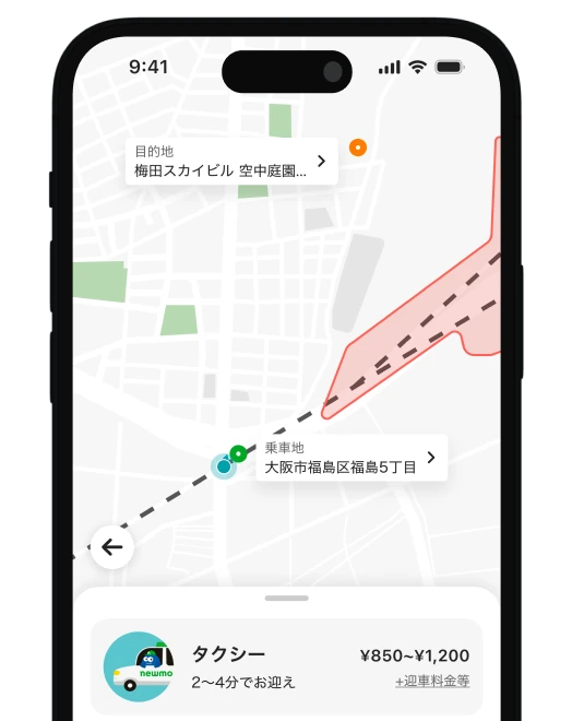 大阪のタクシー移動は「newmo(ニューモ)」